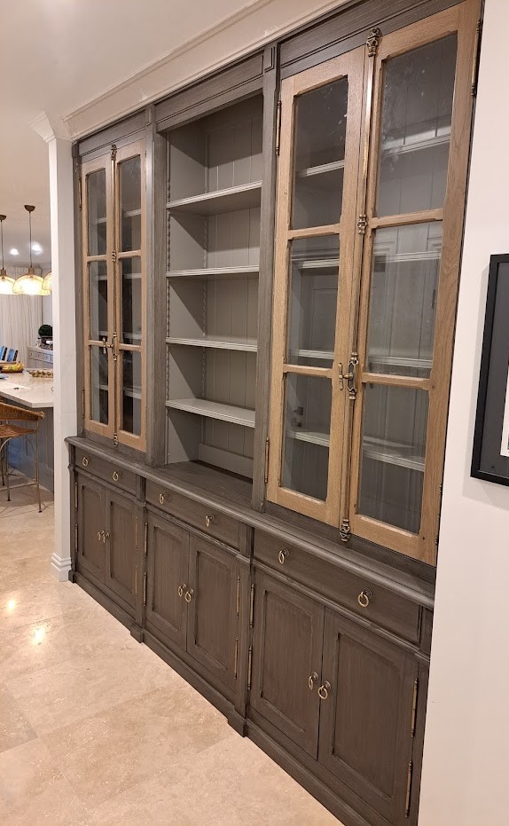 Built in cabinet, combination of distress painted and raw oak