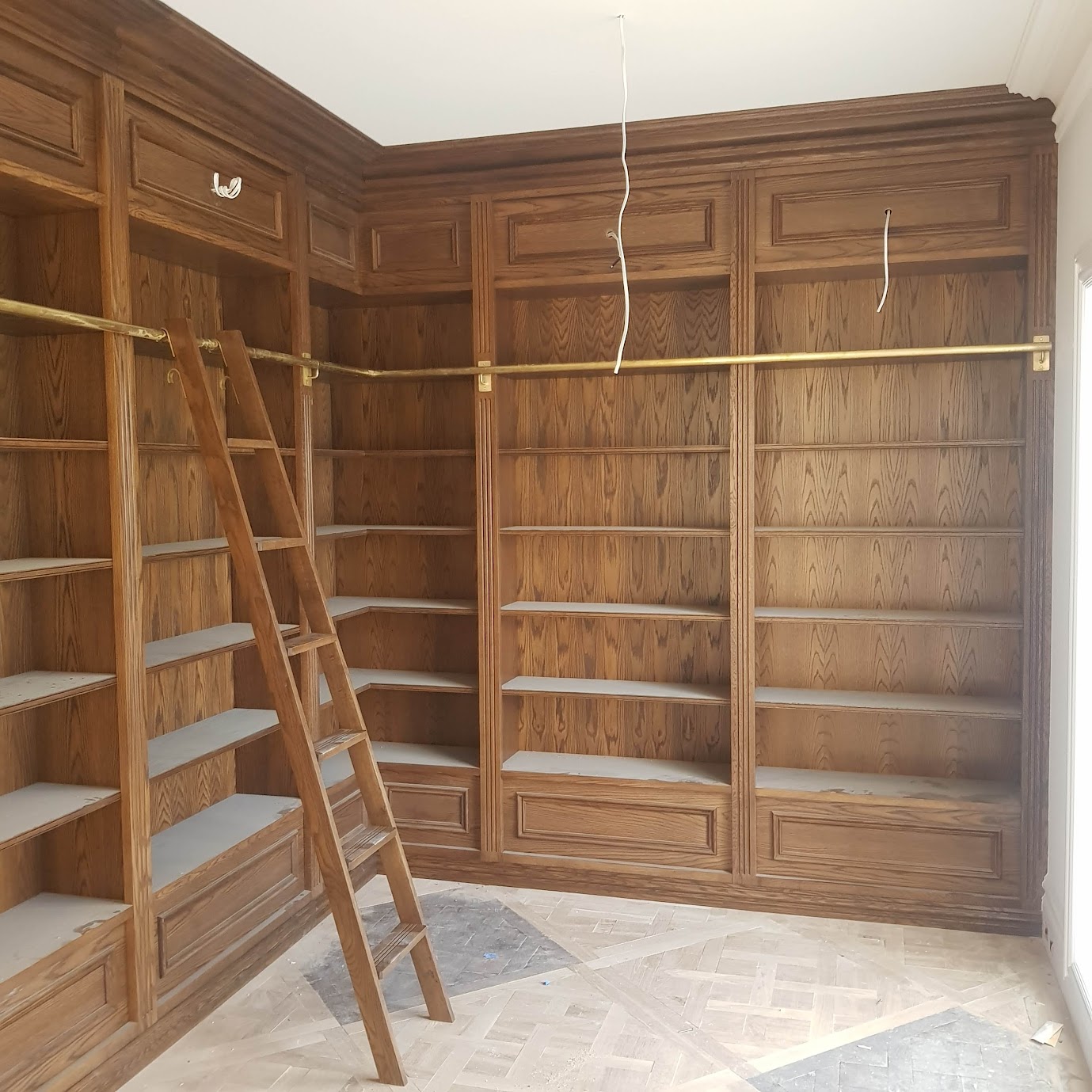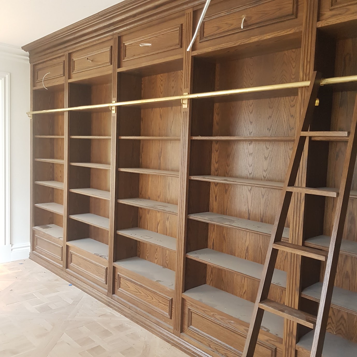 Oak Bookcase with Brass rail and ladder