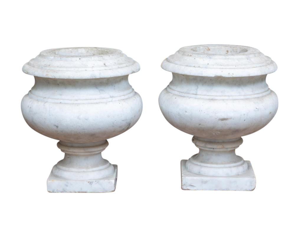 Pair of French 19th Century white marble urns