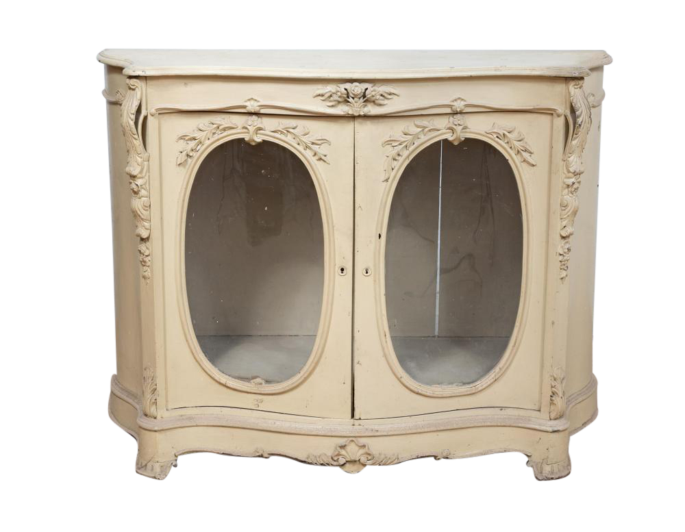 Two door French 19th century cabinet with curved glass panelled doors, original paint, 100 x 128 x 45cm